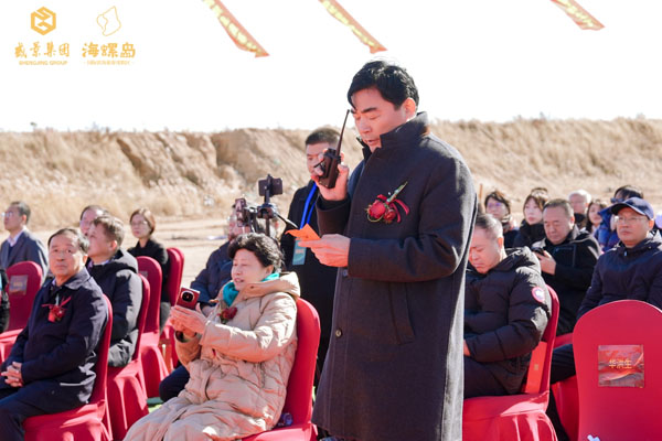 随后,项目施工总包方——河北中铸爱军建设集团董事长薛守华作为企业代表发言。他郑重承诺,将组建专业高效的施工团队,以“高标准、严要求、高质量”推进工程建设,以匠心把控施工细节,严格践行“环保、绿色、低碳”的建设原则,将海螺岛建成国际滨海旅游度假区范本之作”。